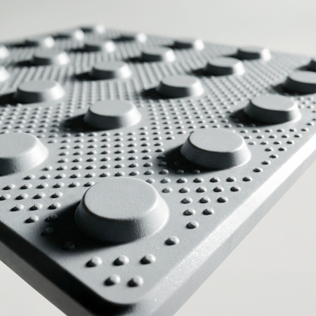 La manufactura del tope de descargue industrial grande en caucho se fundamenta en procesos de vulcanización de alta presión, lo que le confiere una densidad maciza y uniforme. Para asegurar que las dimensiones y los puntos de anclaje cumplan con los estándares de ingeniería logística, los moldes industriales son fabricados mediante mecanizado CNC, garantizando una respuesta técnica confiable ante impactos de gran magnitud.
